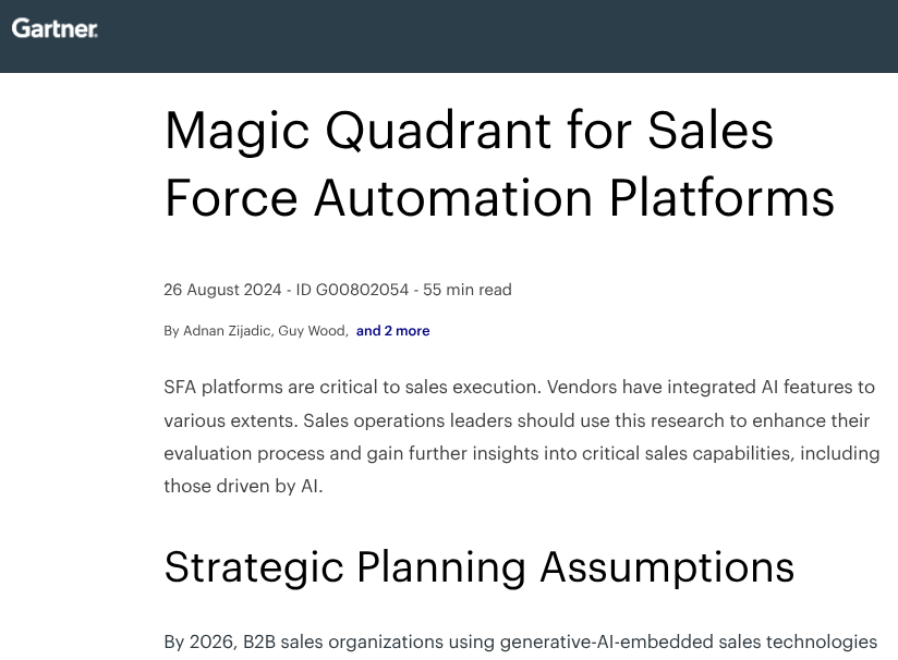 Gartner Magic Quadrant for Sales Force Automation Platforms